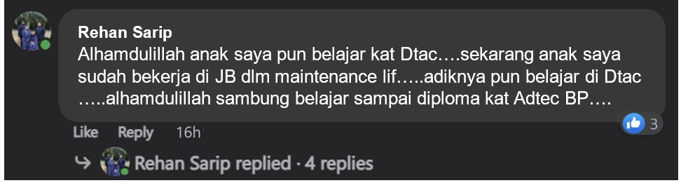 Sekarang, dalam masa 3 tahun beliau telah menjawat jawatan sebagai Senior Technician.